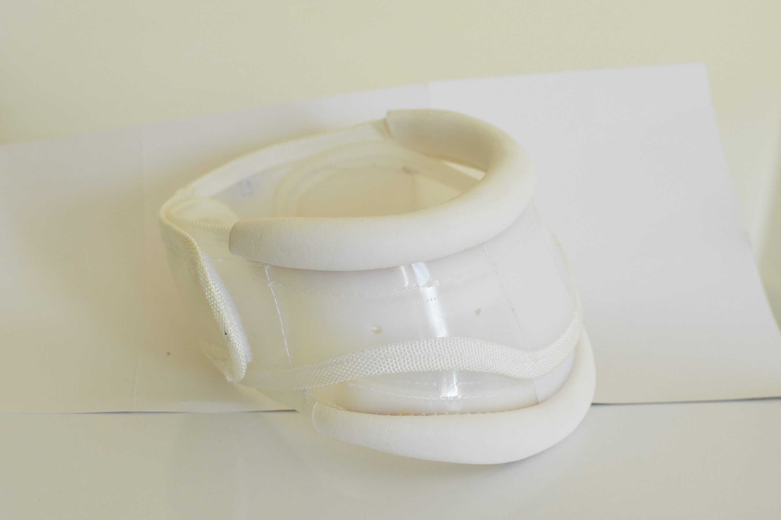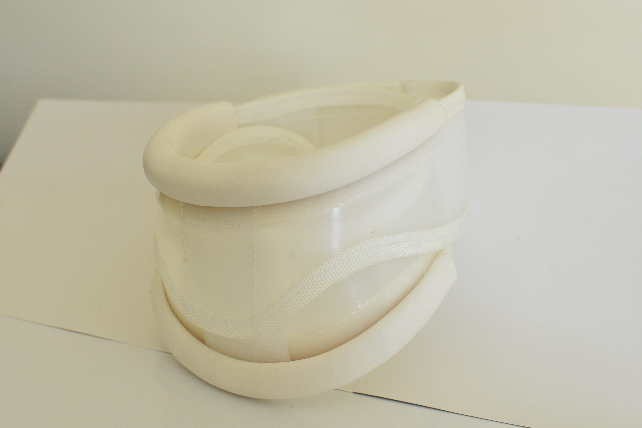 دو لبهي گردن بند طبی سخت از ابر مخصوص پوشيده شده که از ايجاد ناراحتي براي بيمار جلوگيري ميکند.